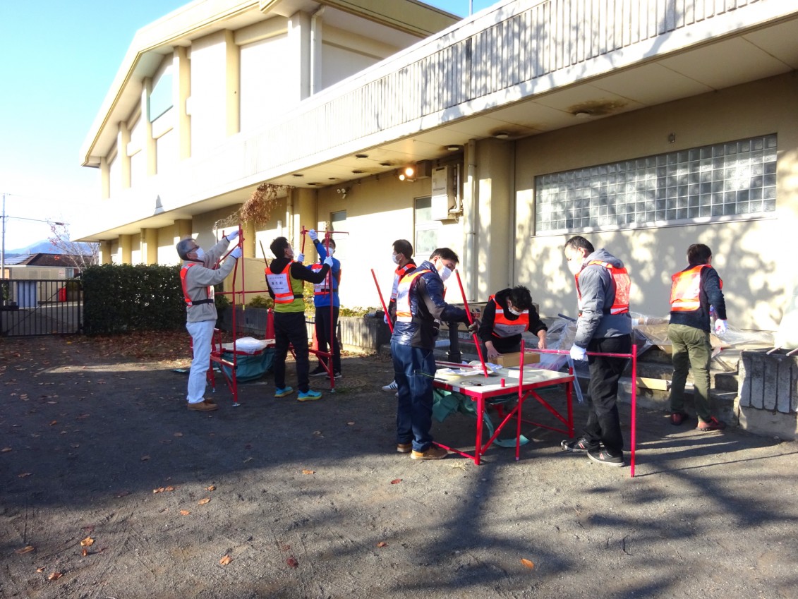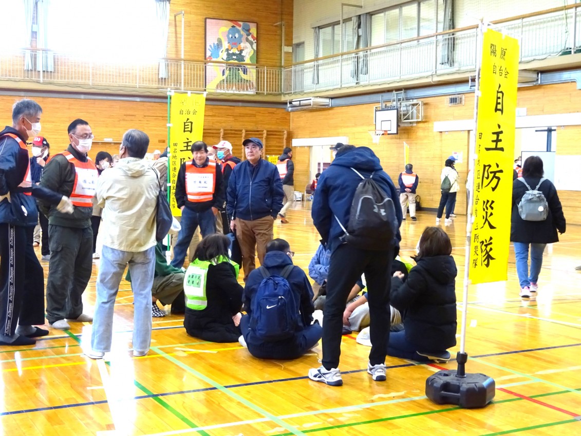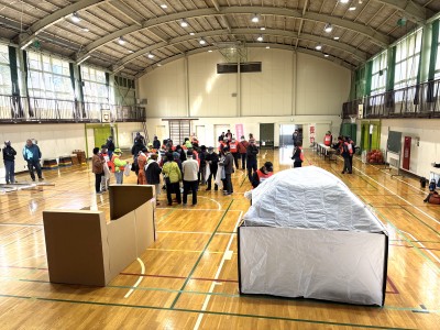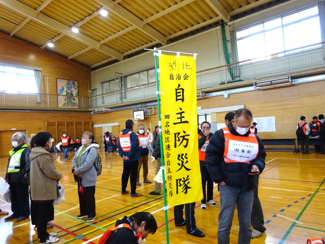 大規模地震が発生した場合、住居の損壊、倒壊、焼失又はライフラインの損壊で、日常の生活が困難になることが想定されます。田名地区内12自治会の被災者の地域拠点として「田名小学校」「田名北小学校」に避難所を開設し、運営協議会を中心に避難者全員で連携、協力して避難所開設運営ができるよう実践的かつ総合的な開設訓練を実施しました。