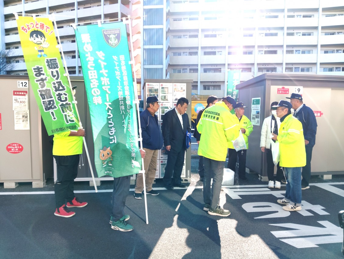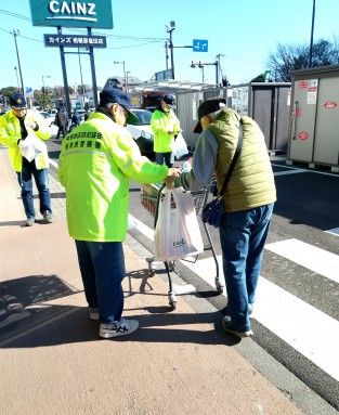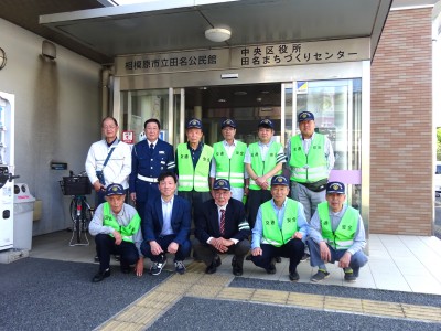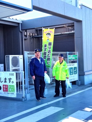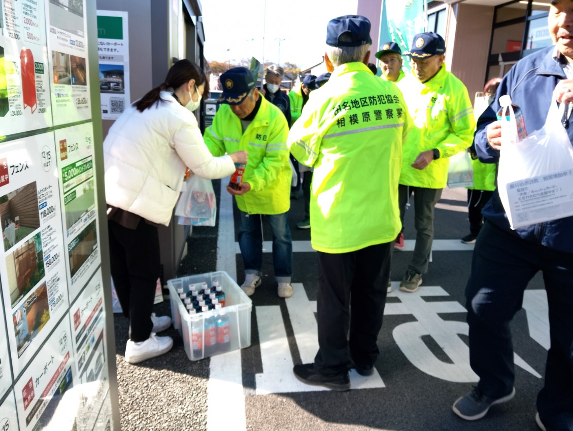 ① 12月5日(金)午前10時30分からヨークフーズ田名店とカインズホーム相模原塩田店において、安全・安心まちづくり推進協議会と田名地区防犯協会の役員及び青パト乗務員による「全国安全・安心まちづくり旬間」に伴い防犯キャンペーンを行い、広報啓発物品を来店者に対して配付しました。