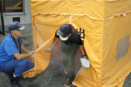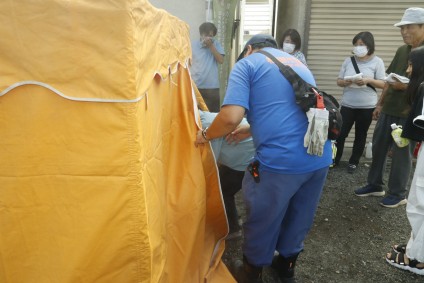 煙体験ハウスの準備をする田名分署職員