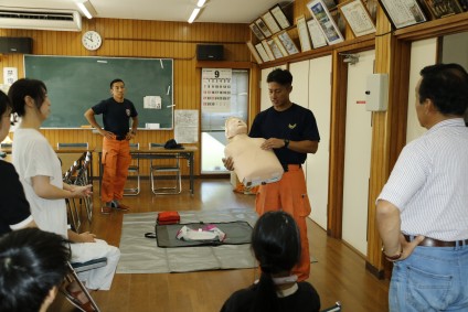 心肺蘇生訓練の手順を説明する田名分署署員