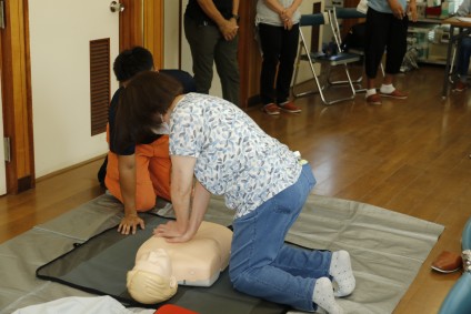 心肺蘇生訓練を行う参加者