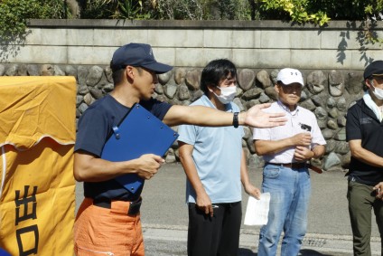 今日の訓練の内容を説明をする田名分署野崎隊長