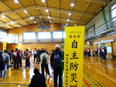 大規模地震が発生した場合、住居の損壊、倒壊、焼失又はライフラインの損壊で、日常の生活が困難になることが想定されます。田名地区内12自治会の被災者の地域拠点として「田名小学校」「田名北小学校」に避難所を開設し、運営協議会を中心に避難者全員で連携、協力して避難所開設運営ができるよう実践的かつ総合的な開設訓練を実施しました。