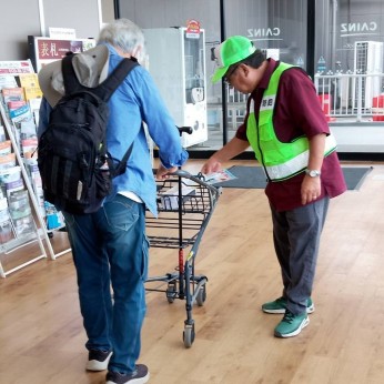 ① 10月10日(金)午前10時30分からヨークフーズ田名店とカインズホーム相模原塩田店において、安全・安心まちづくり推進協議会と田名地区防犯協会の役員及び青パト乗務員による「全国安全・安心まちづくり旬間(10月11日~10月20日)」に伴い防犯キャンペーンを行い、広報啓発物品を来店者に対して配付しました。