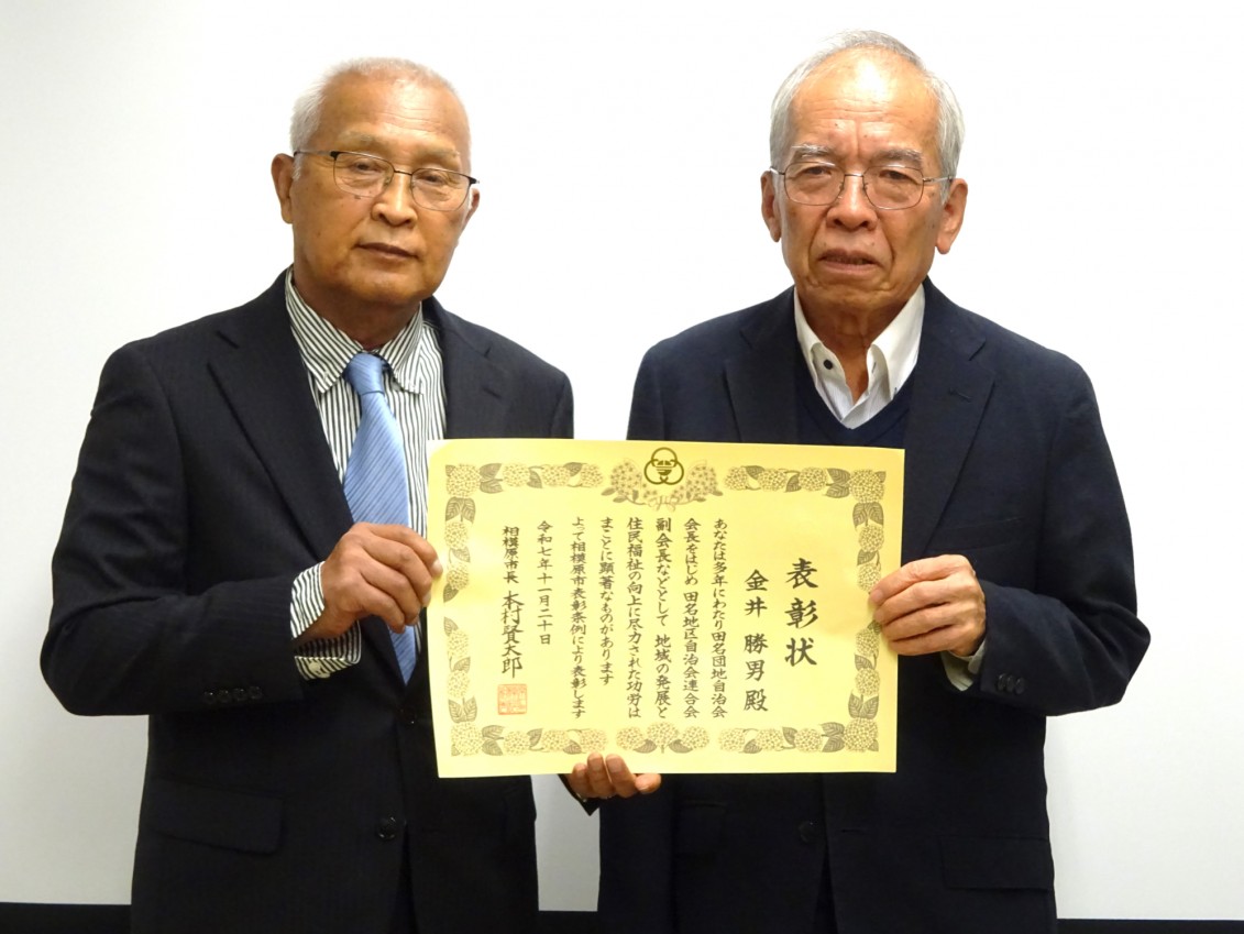 金井 勝男 様(田名団地自治会)が「市政功労者表彰」を受賞されました❣