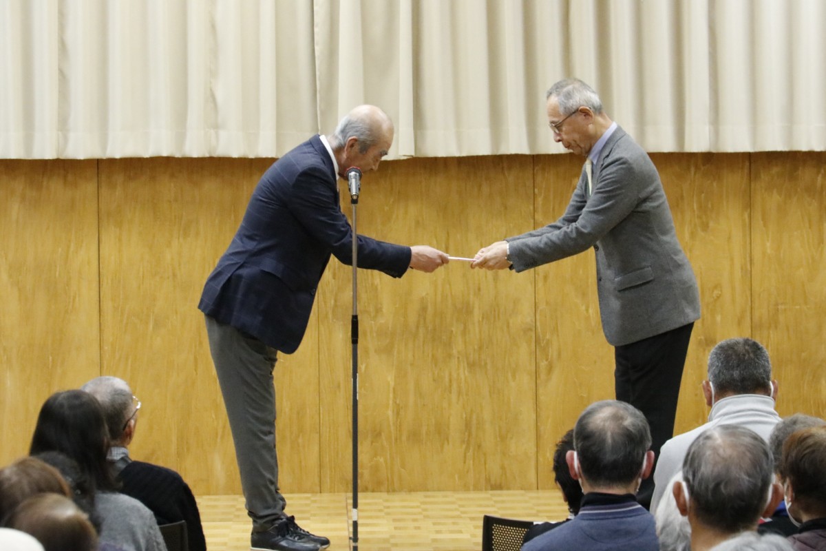 ふるさとの気風を唄いあげた「民謡」、自らの生い立ちを表す「方言」、会場に来られた田名の方々の心と心のつながりを感じさせるひと時でした。今回の「民謡の集い」に来場された皆様からの入場料全額は、相模原法人会田名支部田所支部長より田名社会福祉協議会小川会長に寄付されました。