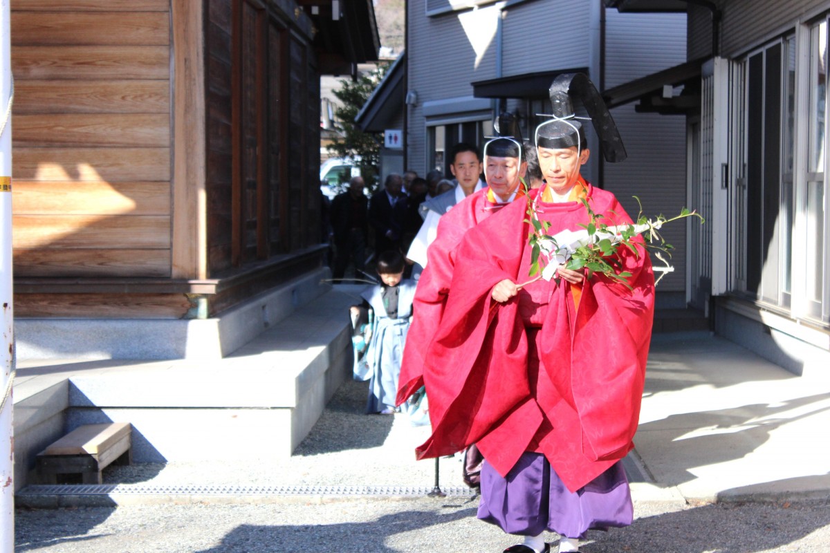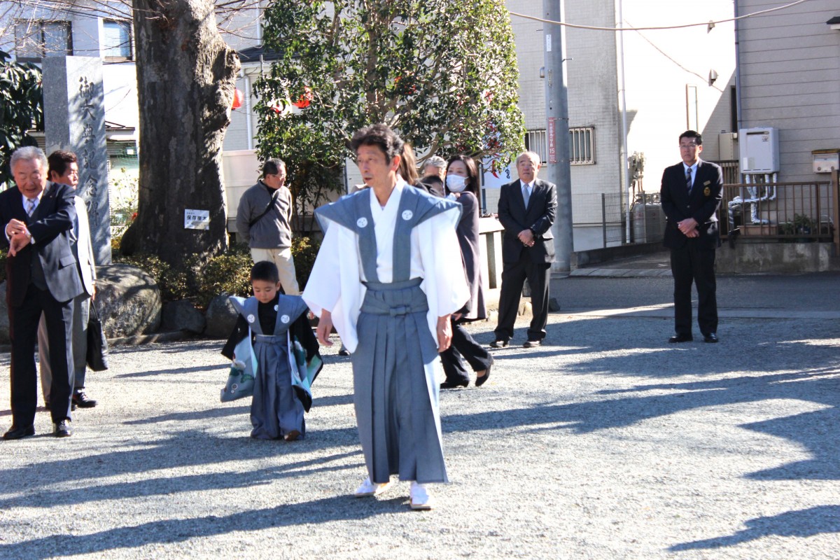 的祭神事が終了した後、挨拶を行う細川相模原市教育長