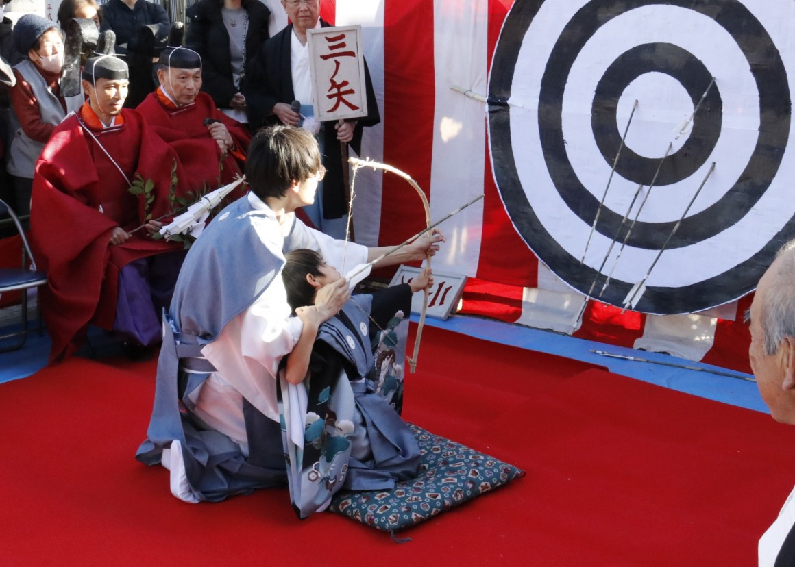 田名八幡宮 神事「的祭(まとまち)」 (令和8年1月6日 正午より)一ノ矢=天下泰平、国土安泰の「神の矢」(三番射手)